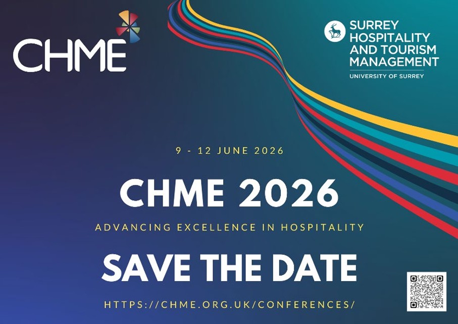 Plans are underway for CHME 2026 at University of Surrey in June next year and we encourage you to Save the Date! A formal call for contributions has now been launched. Delegates can expect keynotes, workshops on topics such as integrating AI into Hospitality Management Education and panels on working collaboratively with Industry and evidencing impact in Hospitality Management Education for promotions, fellowships and awards, amongst others. These will be coupled with a social programme to showcase Guildford and the University of Surrey campus. For now, our teaser video hints at more here.
